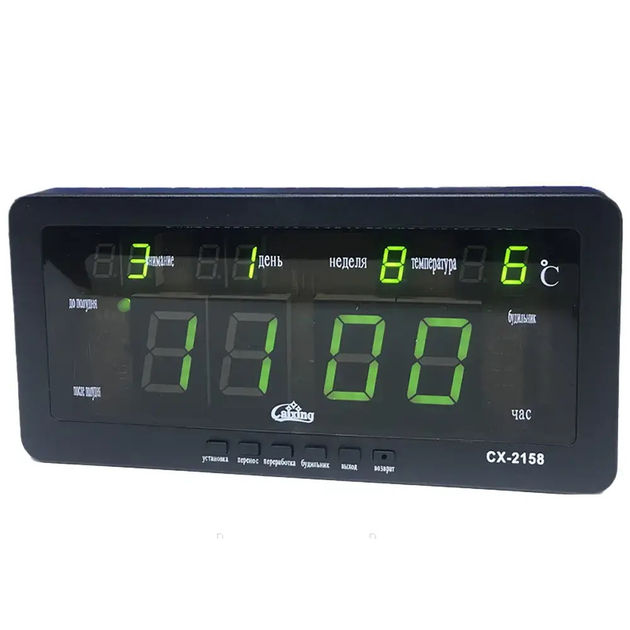 Настільний годинник CX-2158 із зеленим підсвічуванням та будильником 1228