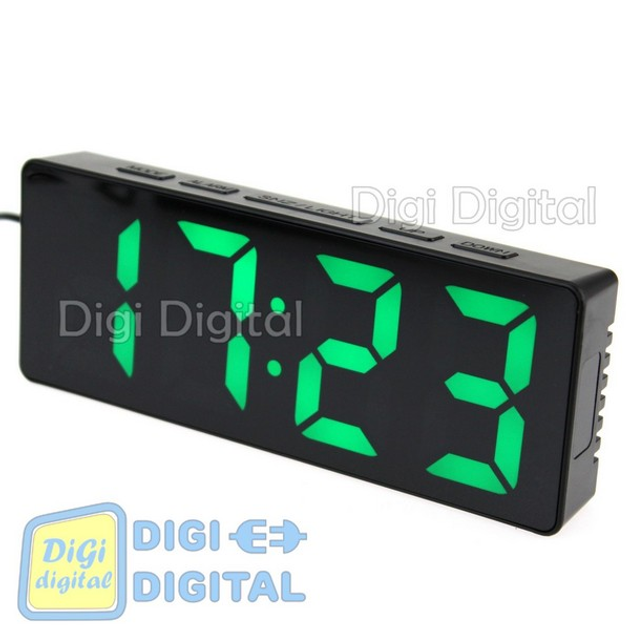 Годинник будильник DS-3806M цифровий регулювання яскравості дисплея термометр usb чорний корпус зелені цифри