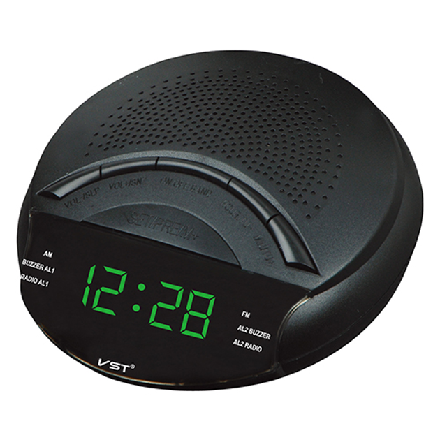 Годинник мережевий VST VST-903-4 LED дисплей салатовий FM радіо Black (00000003505)