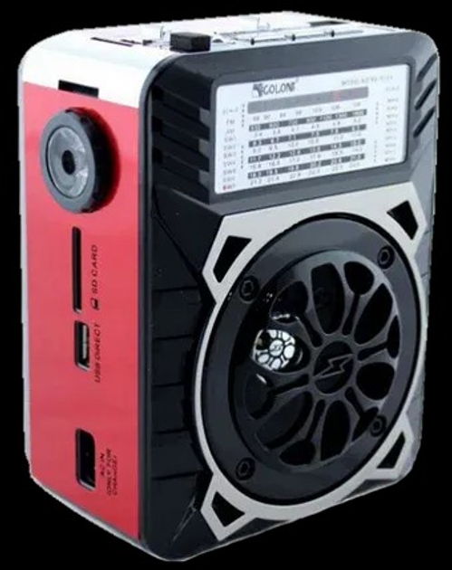 Портативный радиоприемник аккумуляторный Golon RX-9122 с фонариком LED FM/AM/SW тюнером разъем USB/SD Red