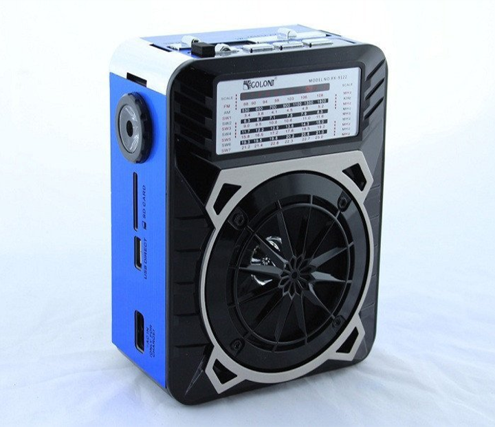 Радиоприемник GOLON RX-9122 на батарейках со встроенным плеером SD, USB + фонарик Синий