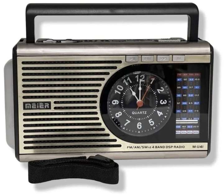 Радіоприймач акумуляторний з блютузом від батарей з годинником та вбудованим ліхтариком радіо акумуляторне Meier Retro Grey