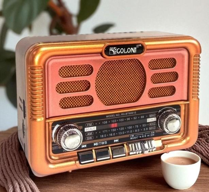 Радіоприймач акумуляторний Golon радіо для відтворення музики через Bluetooth, з підтримкою USB та SD-карт, 3Вт, Коричневий