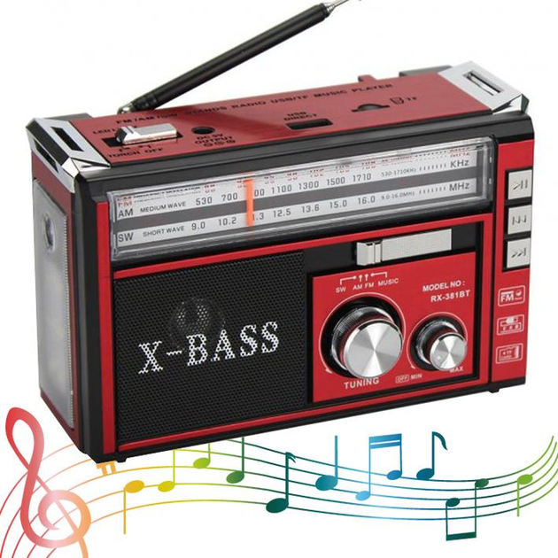 Радіо на батарейках радіоприймач від мережі з ліхтариком, Червоний