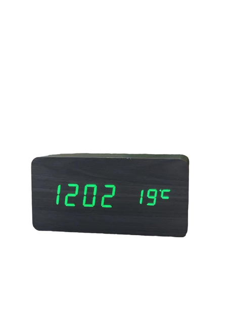 Годинник настільний з термометром VST-862S Чорний корпус Зелене підсвічування