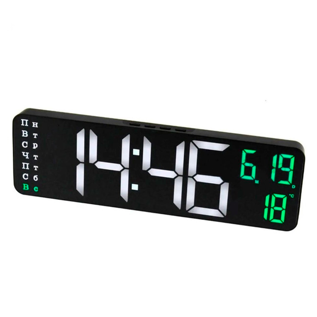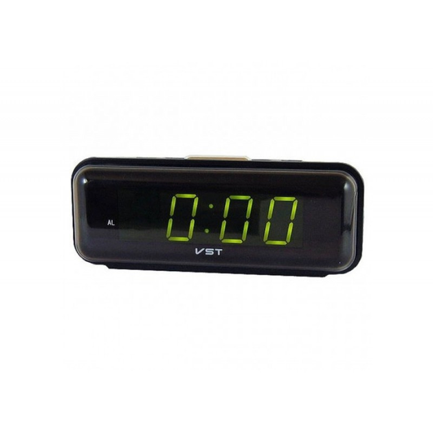 Годинник настільний електронний з біло-зеленим підсвічуванням, чорний