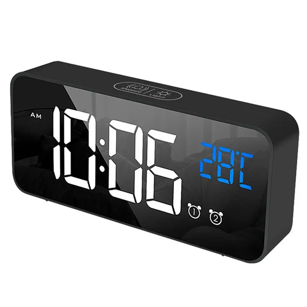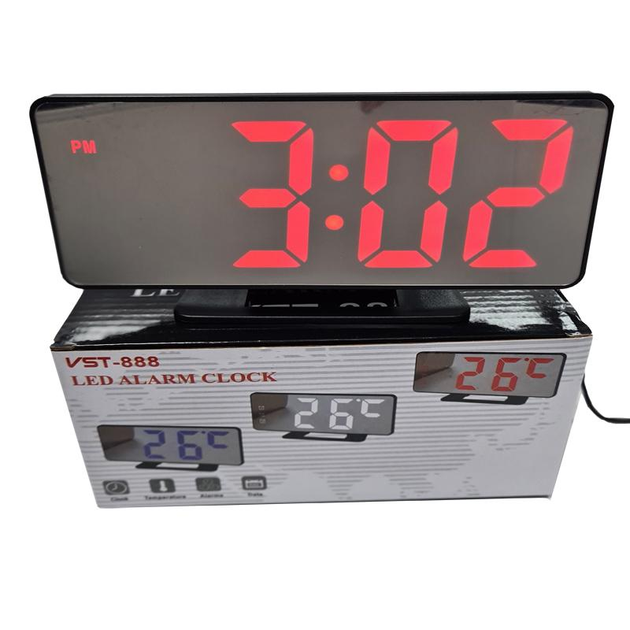 Настільний електронний дзеркальний LED годинник – з будильником і термометром (червоні цифри)