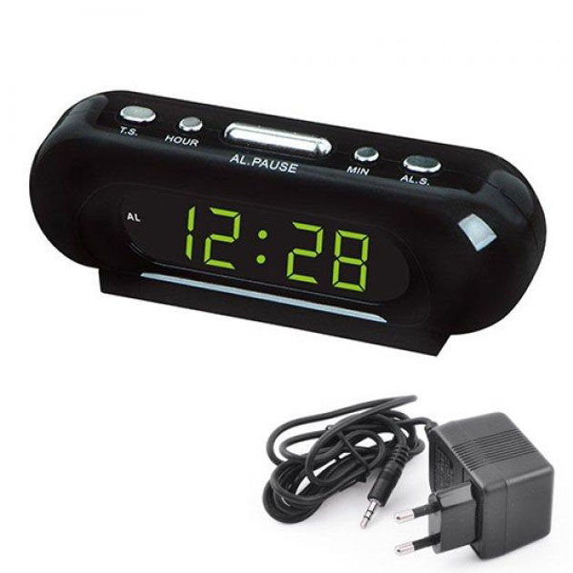Годинник Настільний 220в Будильник Чорний Корпус Світло Зелені Цифри (283131)