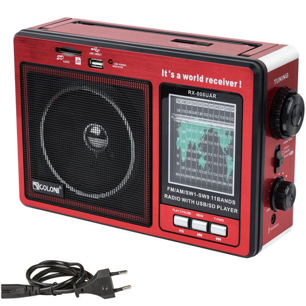 Портативний радіоприймач Golon AM/SW/FM з можливістю відтворення USB/microCD Red