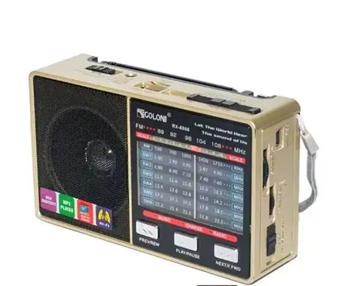 Радіоприймач Golon акумуляторне радіо з підтримкою SD карти USB флешки, Золотий