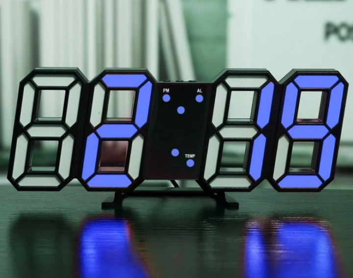 Настільний годинник електронний VST 6802b налаштування яскравості будильник термометр синій