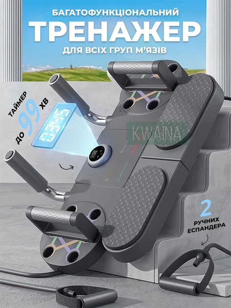 Багатофункціональний тренажер для віджимань та фітнесу з еспандерами, таймером та ковзними ручками - домашній тренажер для с
