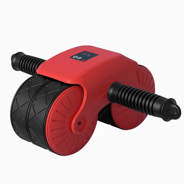 Ролик для преса з дисплеєм USB червоний ABS-пластик метал гума для тренування м'язів преса спини плечей та рук