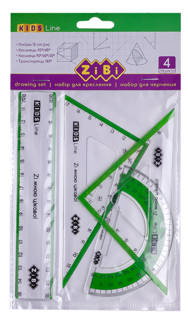 Набір ZB.5687-15 (лінійка 15см, 2 трикутники, транспортир) із салатовою полосою KIDS Line (1/24)