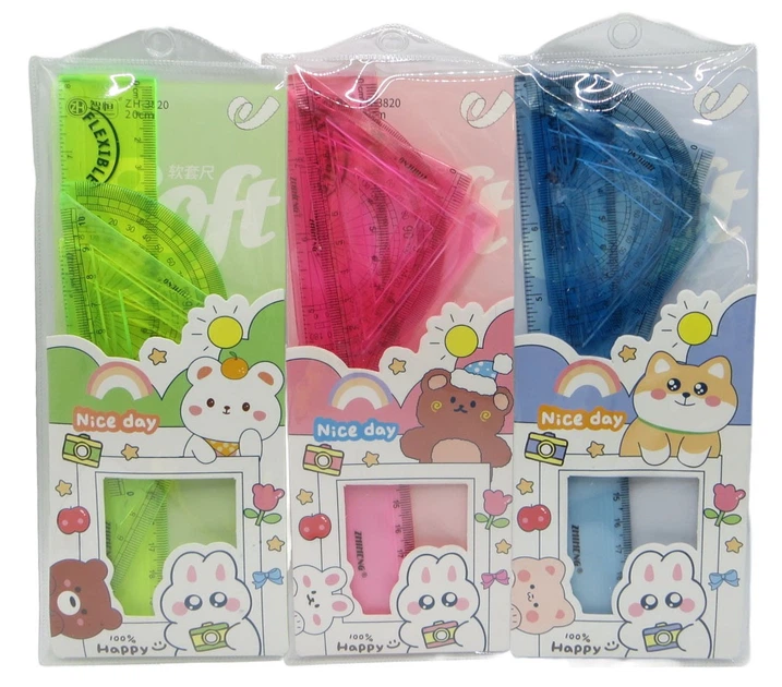 Набір лінійок Flex Неломайка Звірята, ПВХ, 4 предмети (лінійка 20 см, 2 трикутники,транспортир)