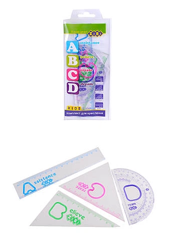 Комплект "ABCD" Лінійка 15см, 2 косинця, транспортир, прозорий ZIBI (ZB.5684)
