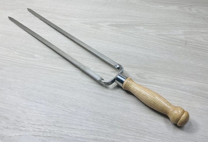 Підвійний шампур дуб, з дерев'яною ручкою