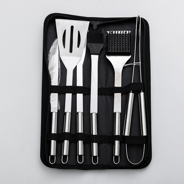 Набір аксесуарів для грилю пікніка та барбекю в тканинному чохлі-сумці 6 предметів з нержавіючої сталі 40 10 5 см Yiwu Чорни