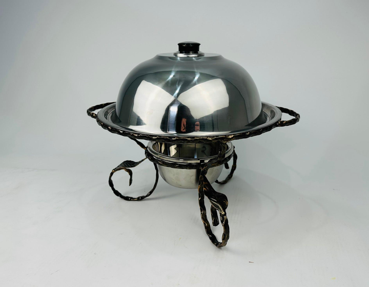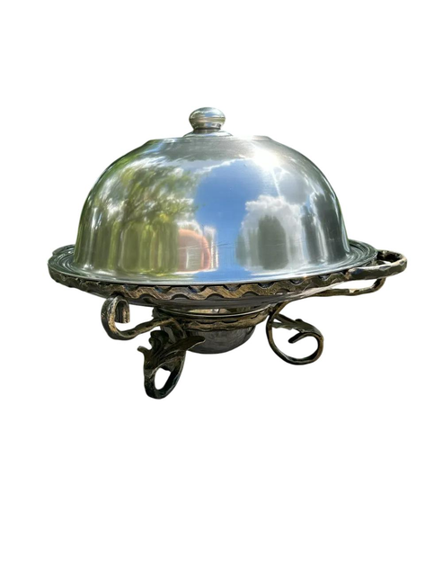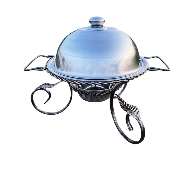 Садж для подачі та підігріву шашлику з кришкою із нержавіючої сталі 36 см з соусницями і чарками Срібний (148-10-SJ-6565)