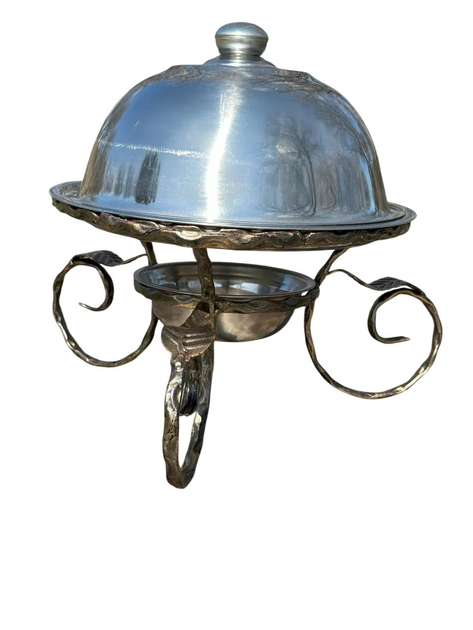 Садж великий для подачі шашлику та підігріву м'яса 36 см ручної роботи кований із нержавіючої сталі Срібний (120-89-6852877)