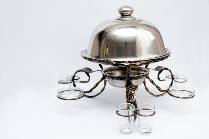 Садж блюдо для підігріву шашлику 28см (соусники + чарки)