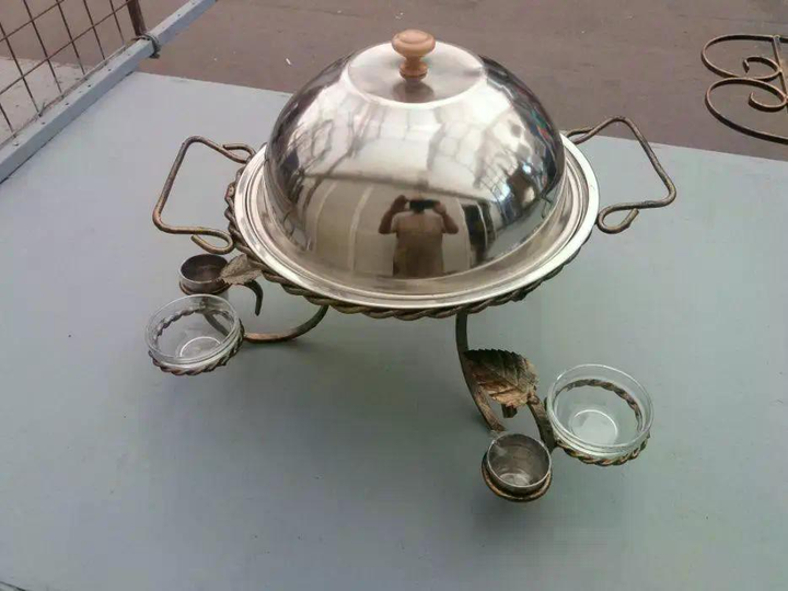 Садж-підставка 28 см кована нержавіюча сталь для розігріву м'яса та овочів, 3 чарки 3 соусниці