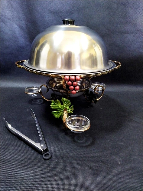 Садж для подачі шашлику із нержавіючої сталі з соусницями та кришкою 36 см Сталевий (21-10-SJ-6587)