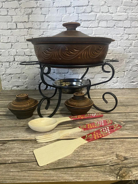 Садж Vitar Жаровня з ручками декор з червоної глини для гарячих страв 3 л