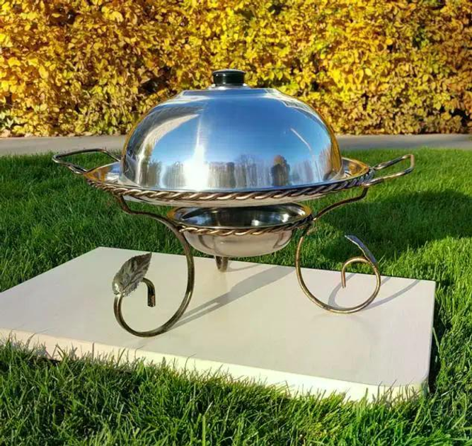 Блюдо-підставка для розігріву шашлику, м'яса садж 36 см з кришкою, кований металевий