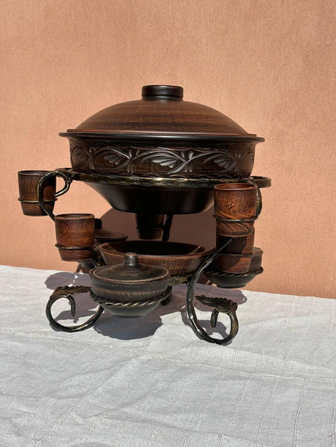 Глиняний садж Таджин з чарками 6 шт та соусниками 3 шт діаметр 28 см об'єм 3 літри