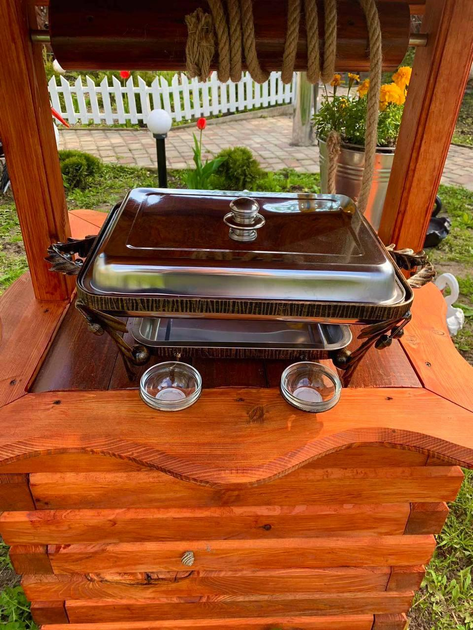 Садж для підігріву м'яса Шашличниця з 3 соусницями та 6 чарками об'єм 3.5 л діаметр 29 см