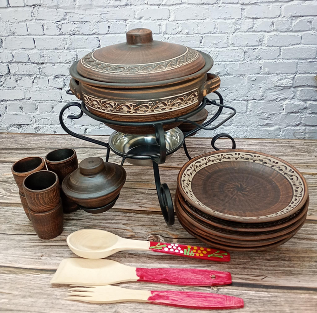Садж Vitar Сімейний декор з каструлею з червоної глини на для шашлику 3500 мл