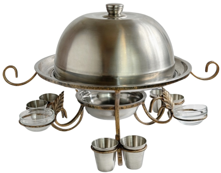 Садж для подачі та підігріву шашлику, овочів прямокутний з соусницями та чарками