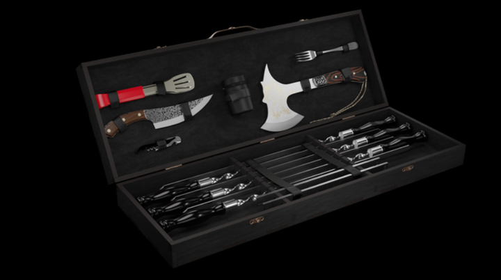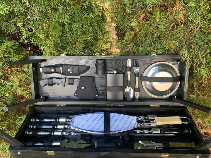 Подарунковий кейс-столик з шампурами та ручками з дерева