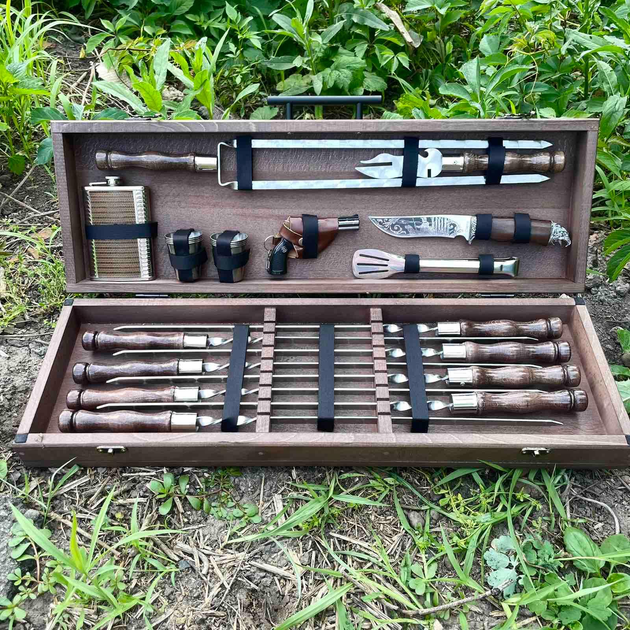 Подарунковий комплект шампурів в обпеченому кейсі із сосни
