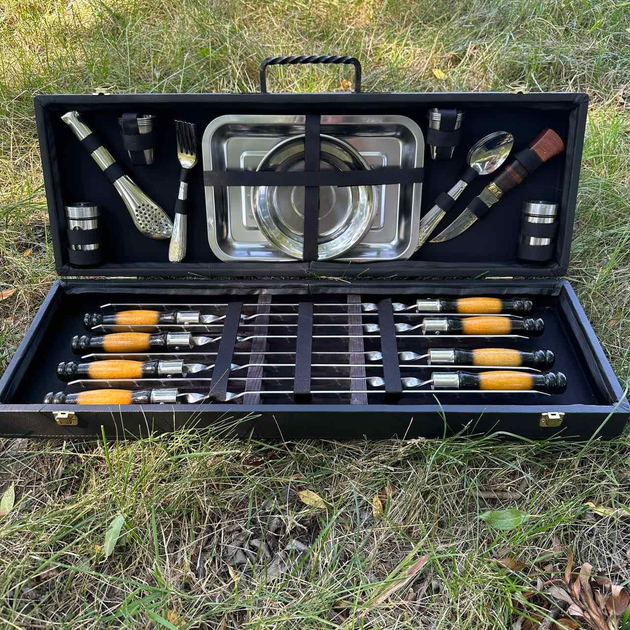 Набір Сокіл Кейс Дерев'яний кейс Для Грилю Пікніка Мангалу N168 22 предмета