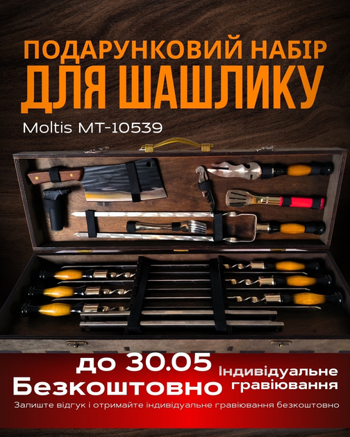 Шашличний набір для мангалу Moltis MT-10540 у кейсі — набір для барбекю, шампура, подарунок чоловіку (4802351510540)