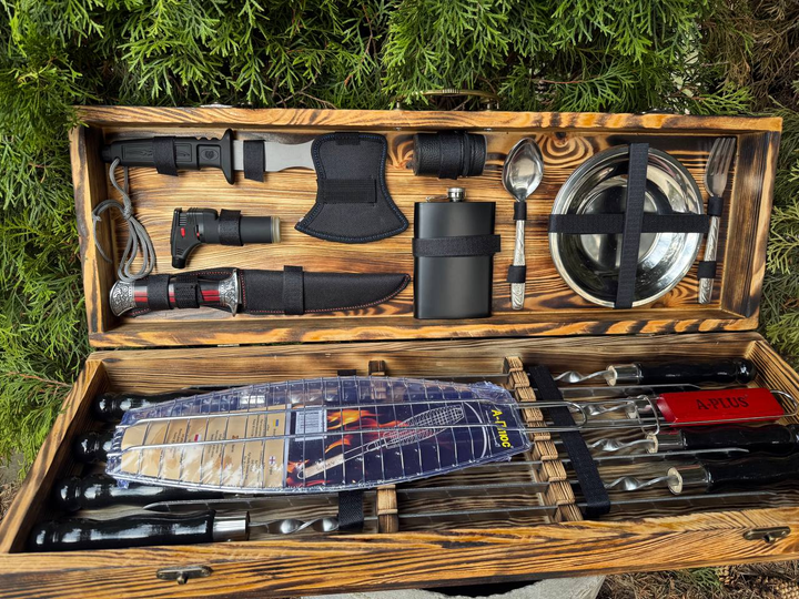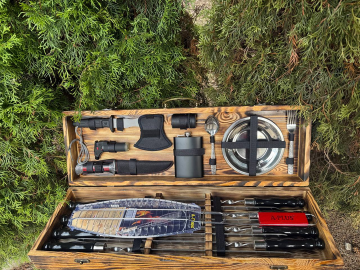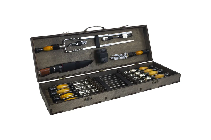 Подарунковий комплект шампурів в обпеченому кейсі із сосни