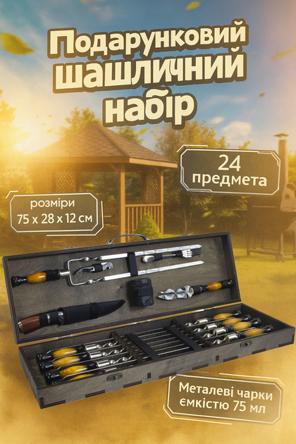 Кейс із дерева з шампурами Пантера МАХ 39 предметів Нержавіюча сталь (14-10-KS-7513)