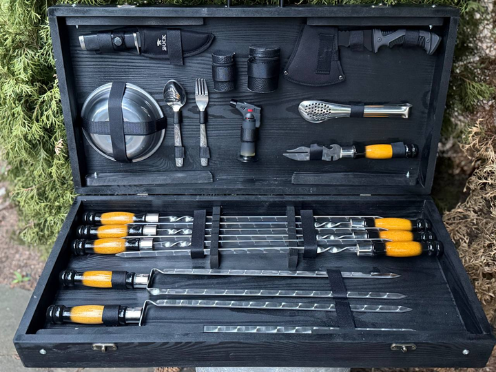 Подарунковий шашличний набір для гриля та барбекю Moltis Tourist MT-10537 Темний подарунок чоловікові, куму, брату, другові,