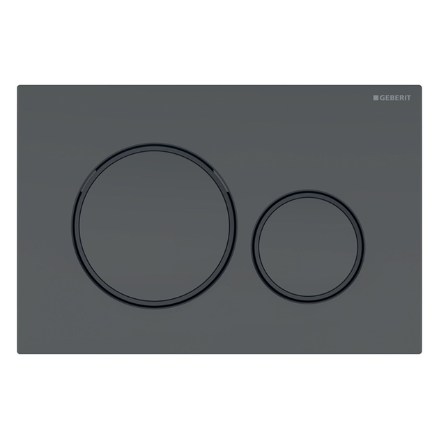 Змивна клавіша Geberit Sigma20 подвійний змив, панель і клавіші - чорний матовий, легкоочисна поверхня, декоративні кільця -