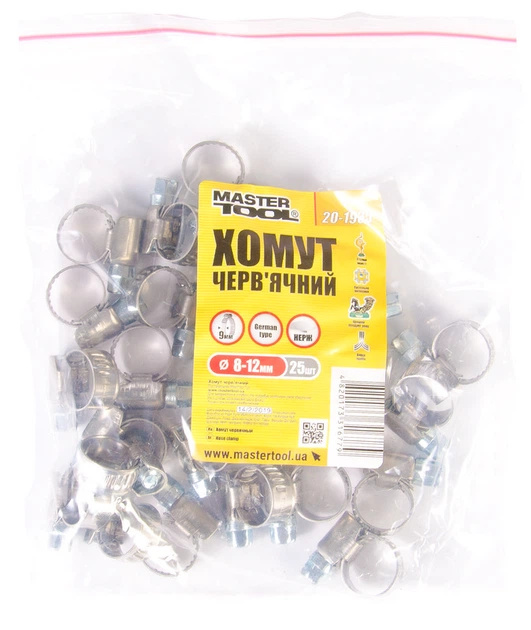 Хомут черв'ячний MASTERTOOL German type W2 DIN 3017 9.0 мм 8-12 мм 25 шт 20-1935