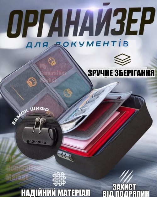 Організатор для документів, гаджетів, карт, флешок з кодовим замком для будинку офісу - дорожня сумка кейс для подорожей