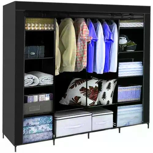 Текстильний шафа-органайзер Ruhhy CP23740 XXL, 14 поличок, 2 штанги, 3 дверцята на блискавці, 17017042 см, флізелін, чорна