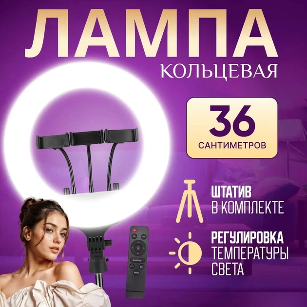 Кільцева LED лампа RL-14-Original 36см + сумка для зберігання + пульт + штатив + 3 тримача для телефону | Набір блогера |Сел