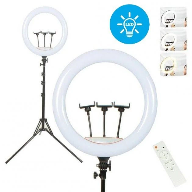 LED лампа RL-18 (діаметр 45 см) з кільцевою формою, оснащена пультом дистанційного керування і трьома тримачами для телефону