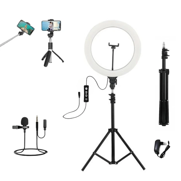 Набір для блогера 4 в 1 Кільцева лампа 39 см Штатив Мікрофон петлічний Селфі палка монопод