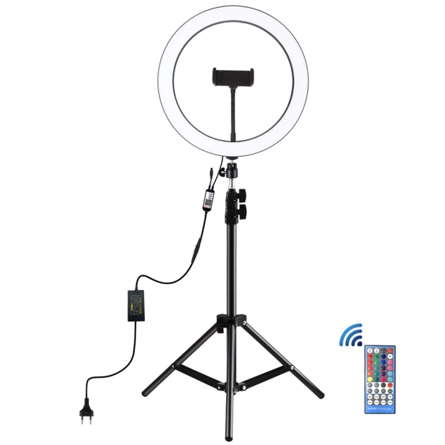 Комплект кільцева світлодіодна RGB лампа LED Lux 45 см MJ18 зі штативом та потрійним затискачем телефону для селфі і пультом