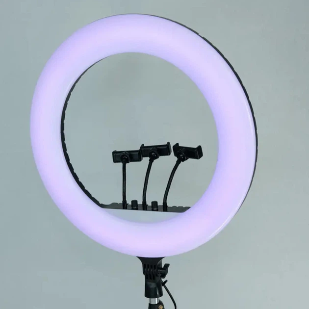 Кільцева світлодіодна RGB лампа LED Lux 56 см MJ56 з потрійним затискачем для телефону для селфі і пультом
