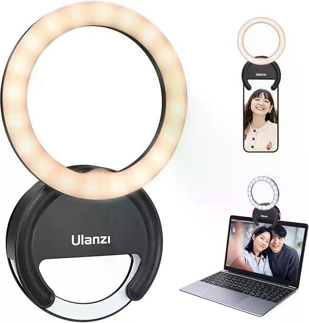 Кільцева лампа Ulanzi F-100, 10 см, 40 LED (SMD2835), 2 Вт, 3000–6500K, акумулятор 500 мА·год
